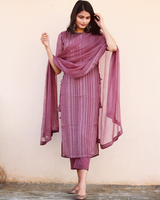 Soft Weight-Less Zari Silk Kurta With Pant and Dupatta Set