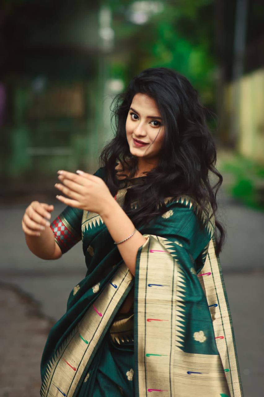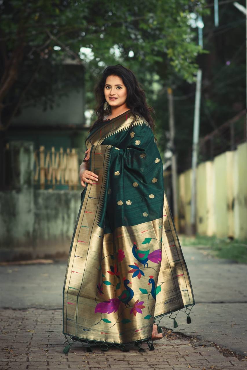Green Banarasi Tussar Silk Paithani Saree With Pure Zari Woven Border