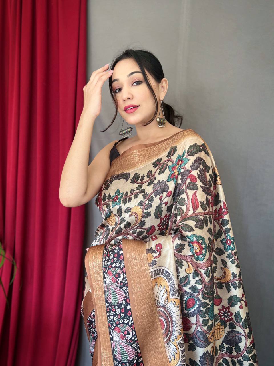 Handprints Concept 3d Prints All Over The Saree With Rich Pallu And Tassels Along With Beautiful Printed Satin Border Border.