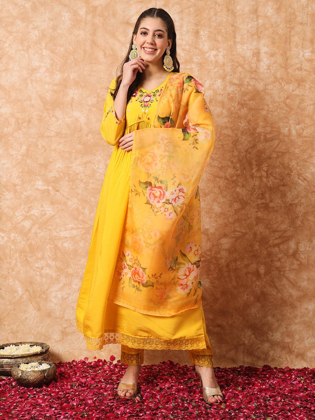 Viscose Rayon Embroidery Work Kurta Set With Dupatta
