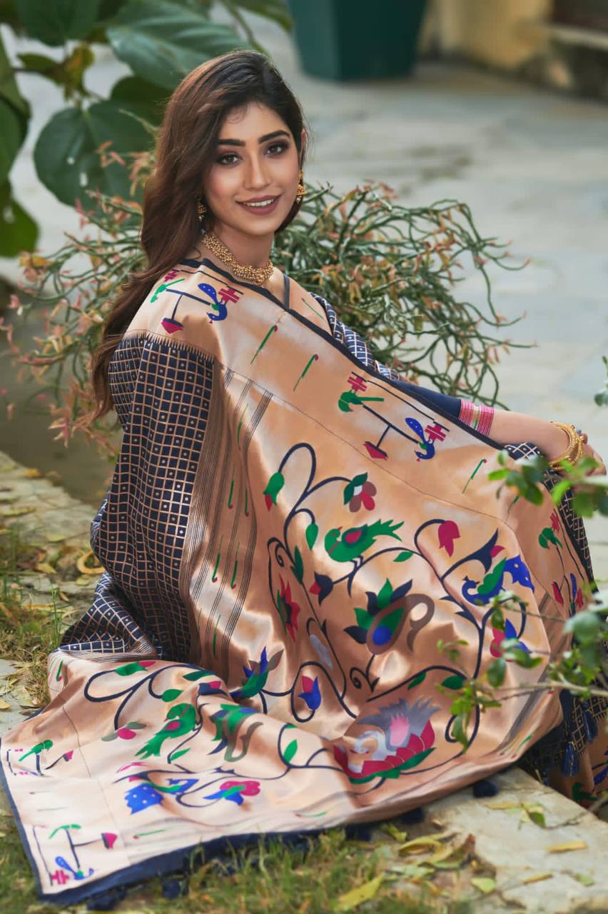 Dark Blue Banarasi Soft Silk Paithani Saree With Fancy Meena Weaves