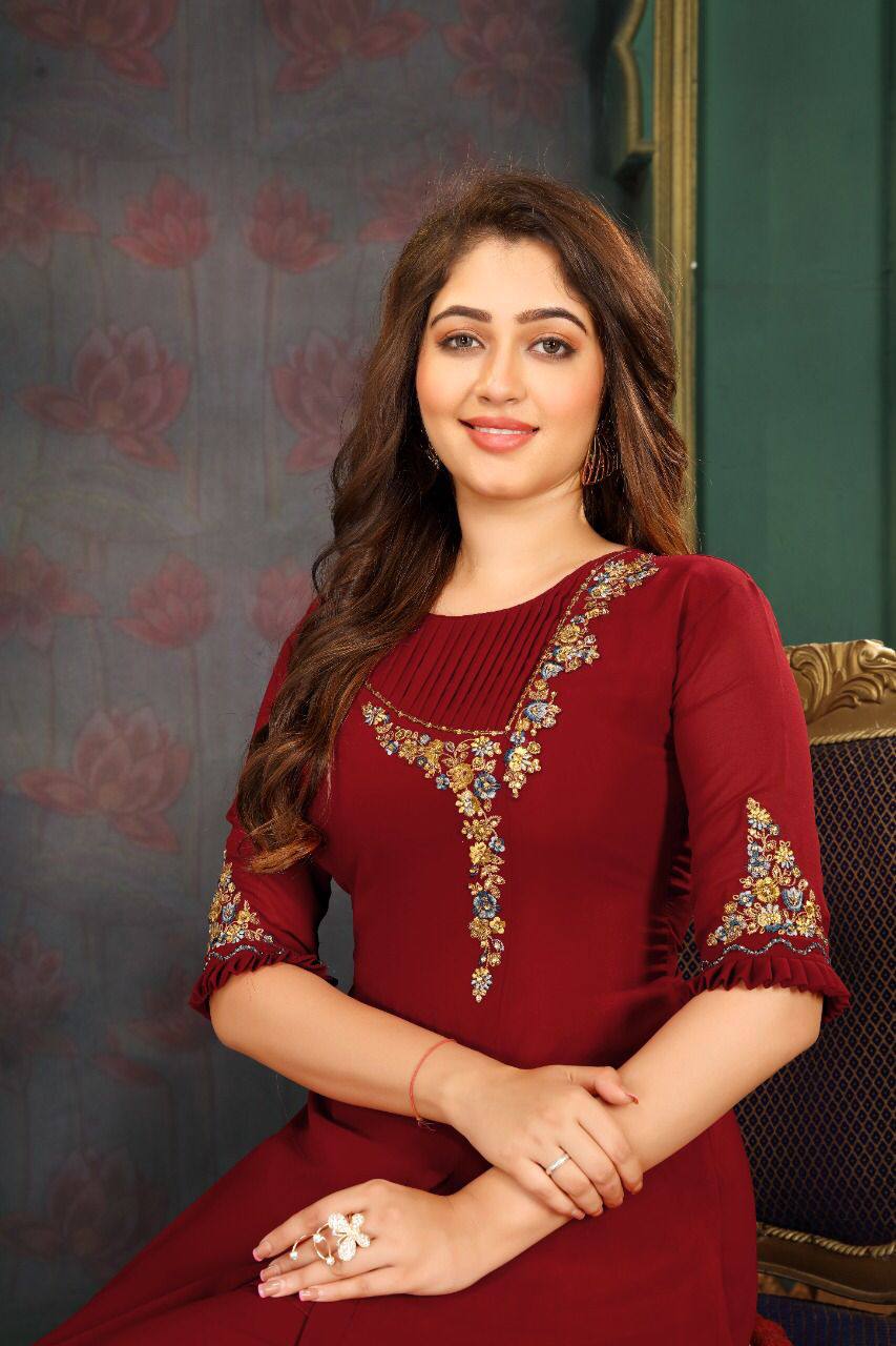 Embroidery Work Faux Georgette Dress
