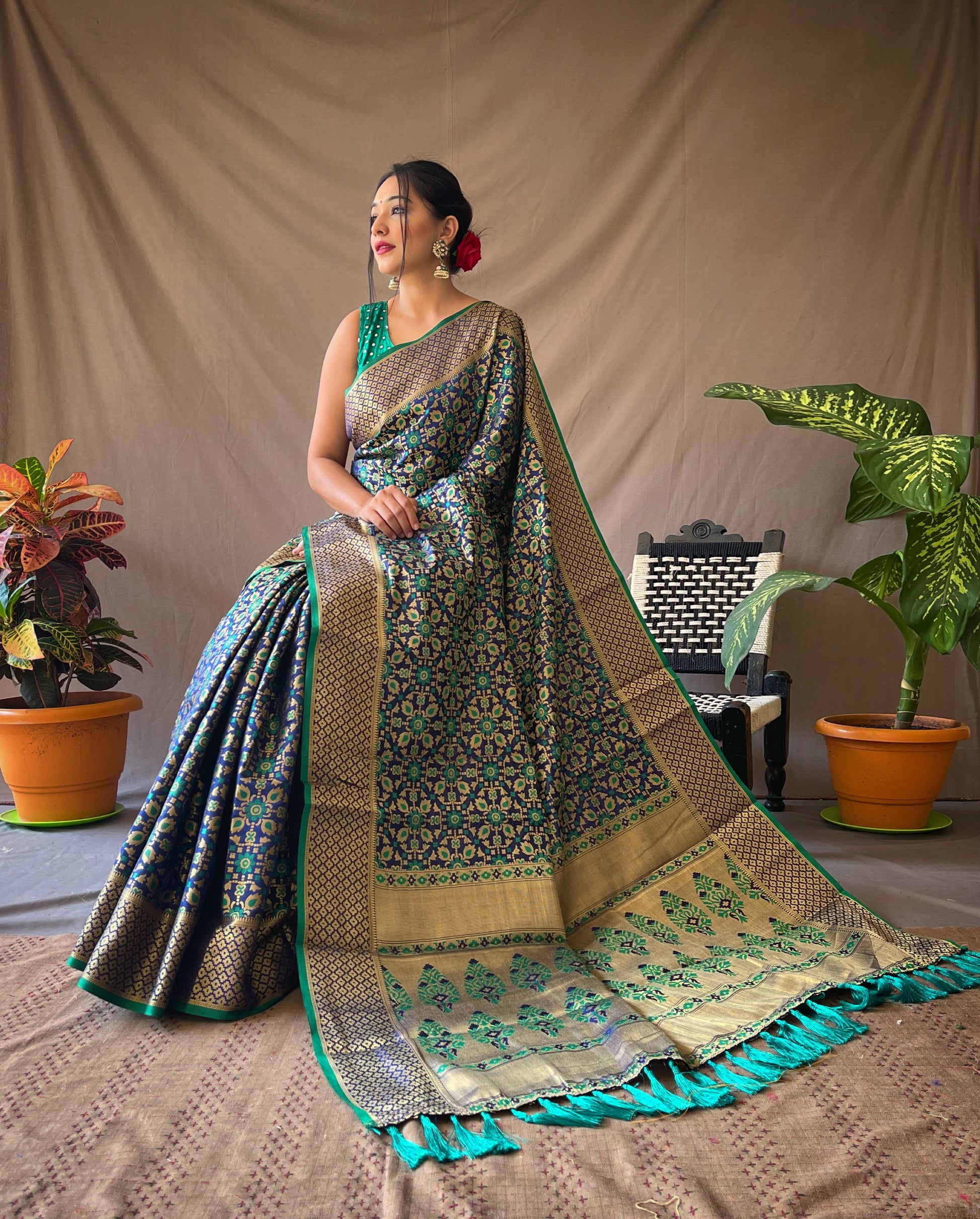 Gold Zari And Meenakari Patola Sarees