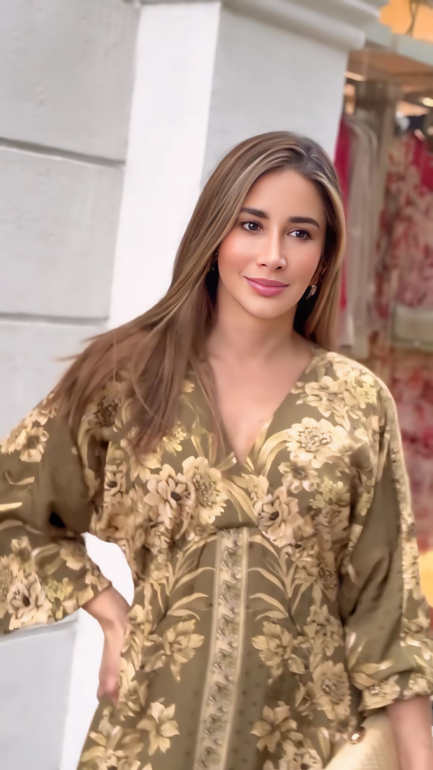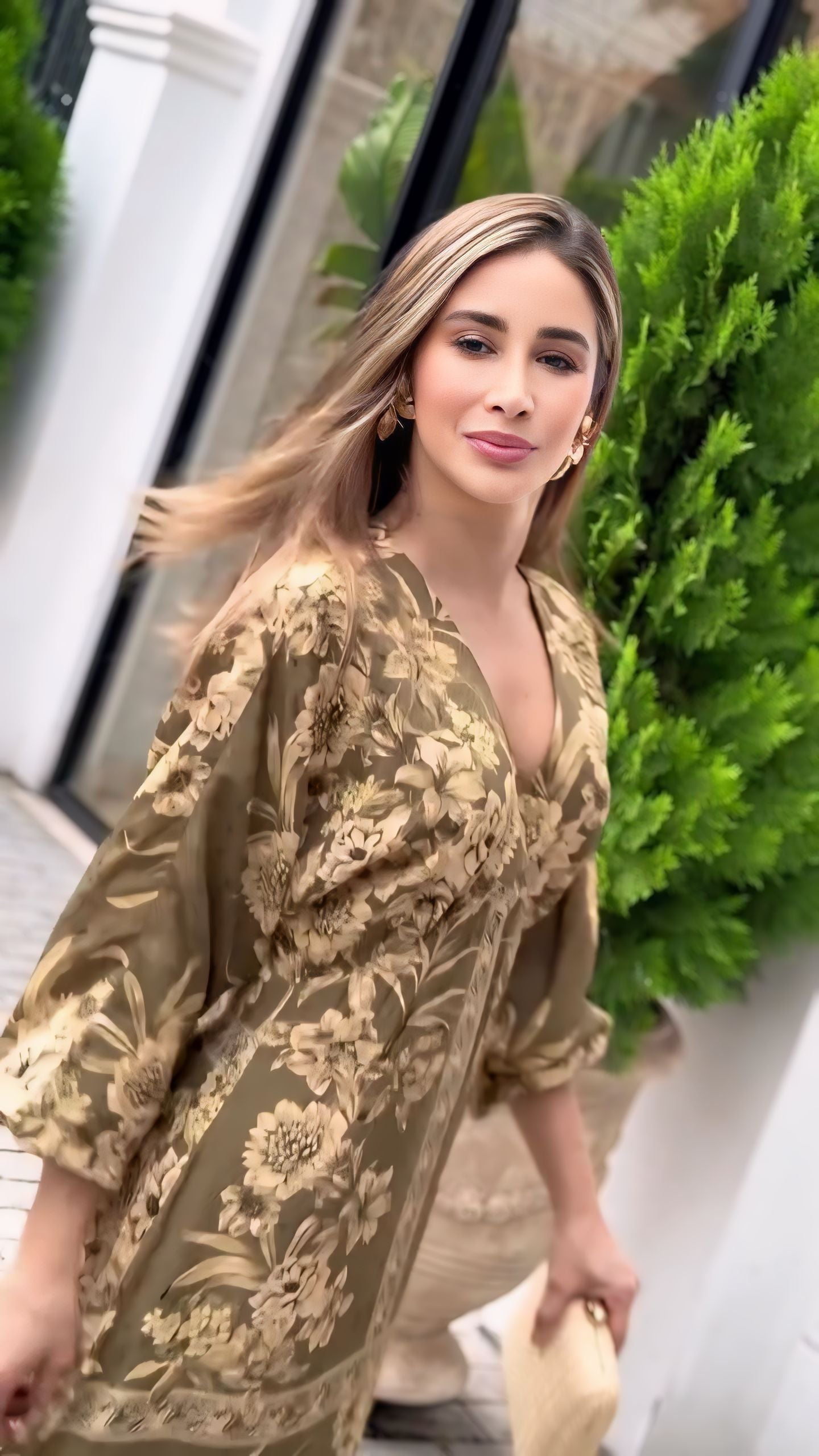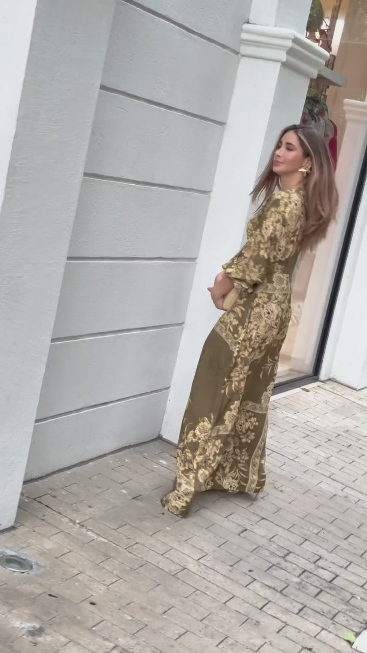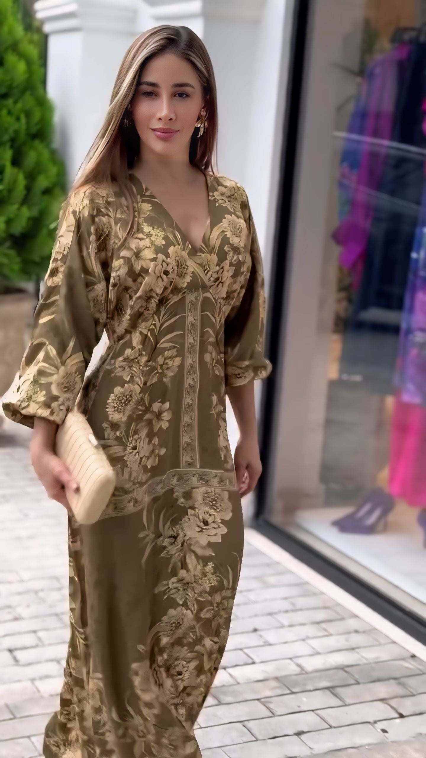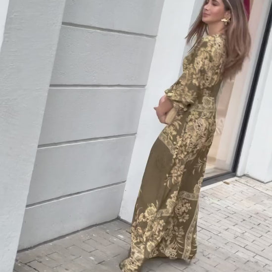Golden Elegance: Flowing Floral Maxi One Piece Dress