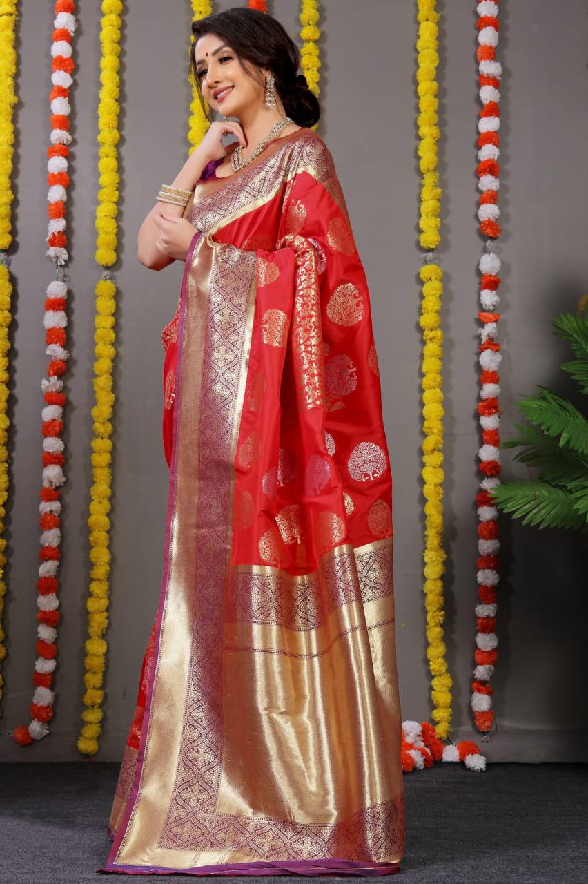 Red Kanchipuram Pure Silk Handloom Saree With Pure Jari