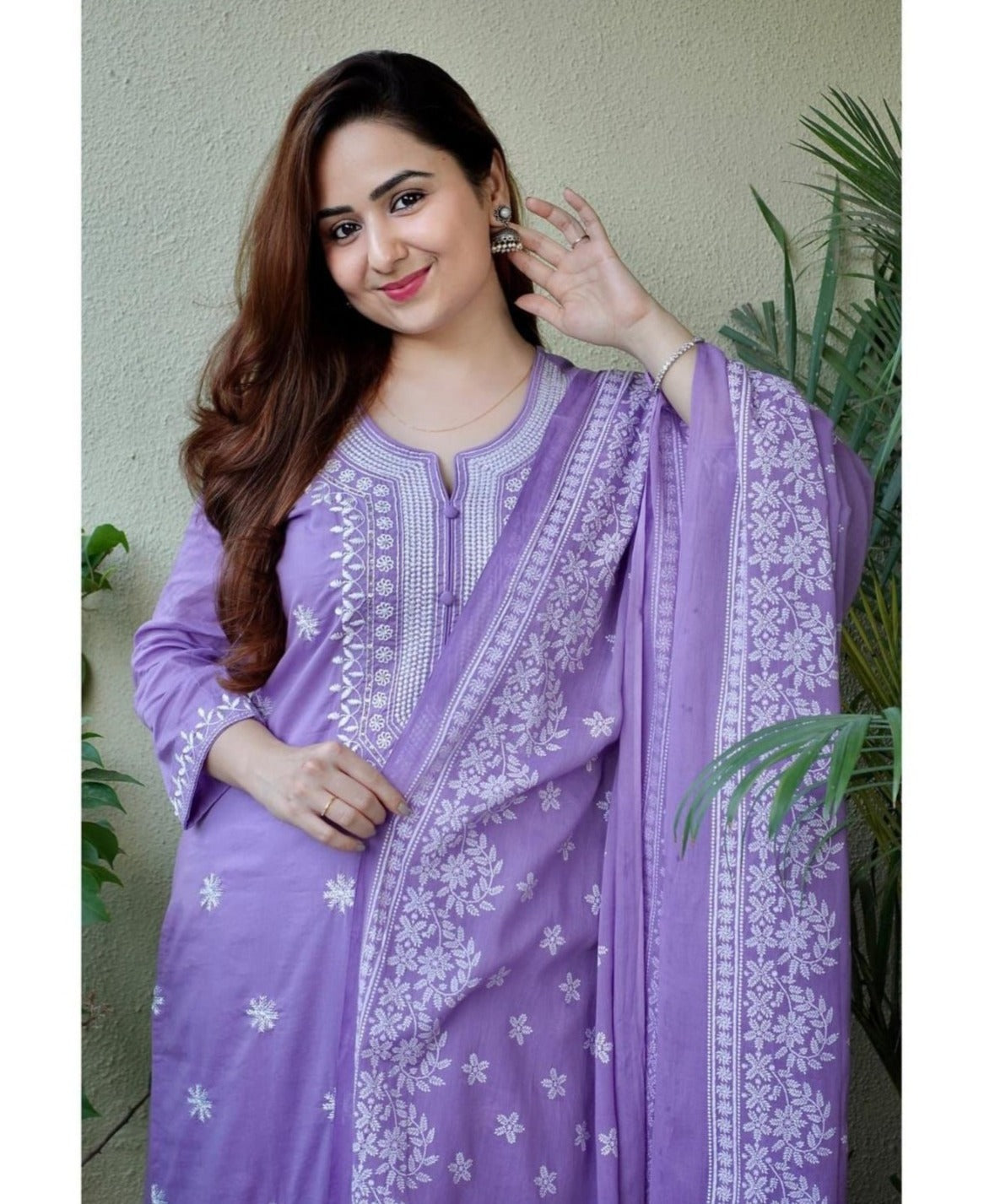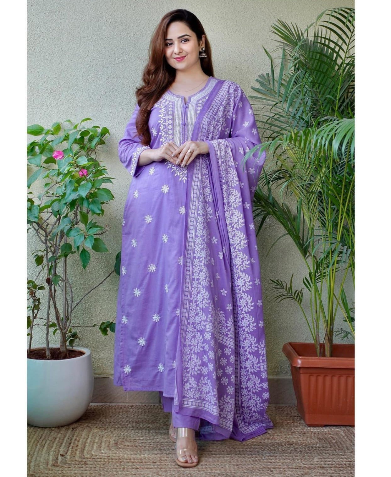 This Outfit Is A Must-have For Your Wardrobe. It Radiates Professionalism And Style, The Embroidery At The Hemline And The High Neck Edges Makes Its Appeal Super Cute. Our Rani And Laylight Kurta Set With Matching Straight Pants, Printed Dupatta Given Embroidery And Scalloped Gives An Outstanding Look.