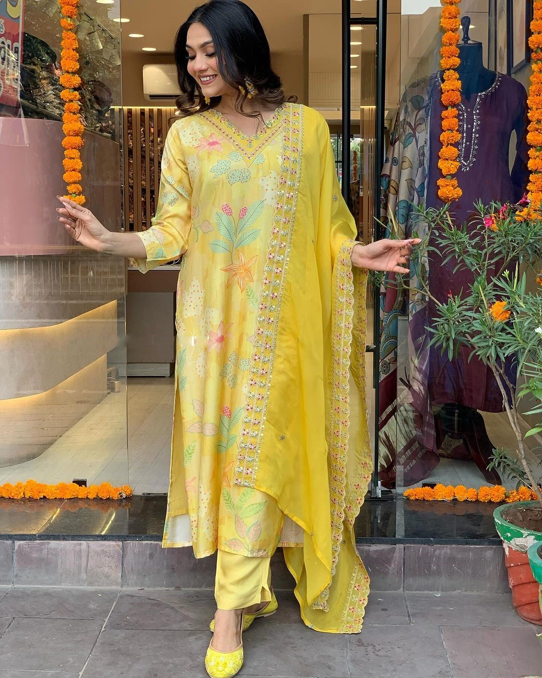 Viscose Muslin Embroidery Work Kurta Set With Dupatta