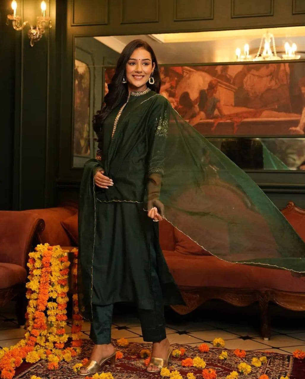 Muslin Gold Zari Embroidered Work Kurta Set With Dupatta