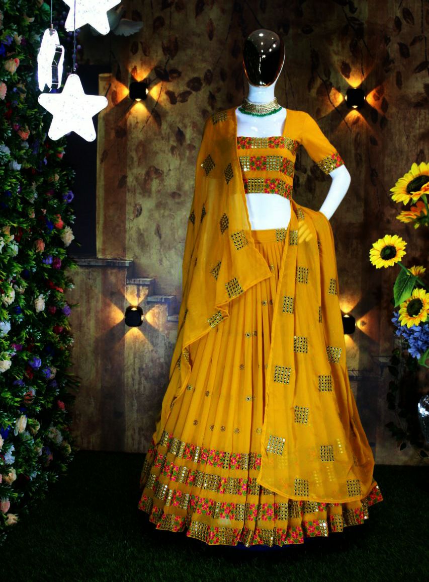 Mustered Embroidered Faux Georgette Party Wear Lehenga Choli