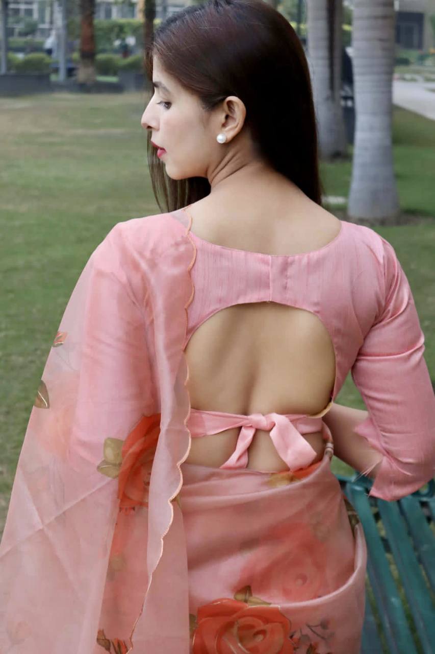 Peach Soft Organza Silk Saree with Beautiful Floral Print
