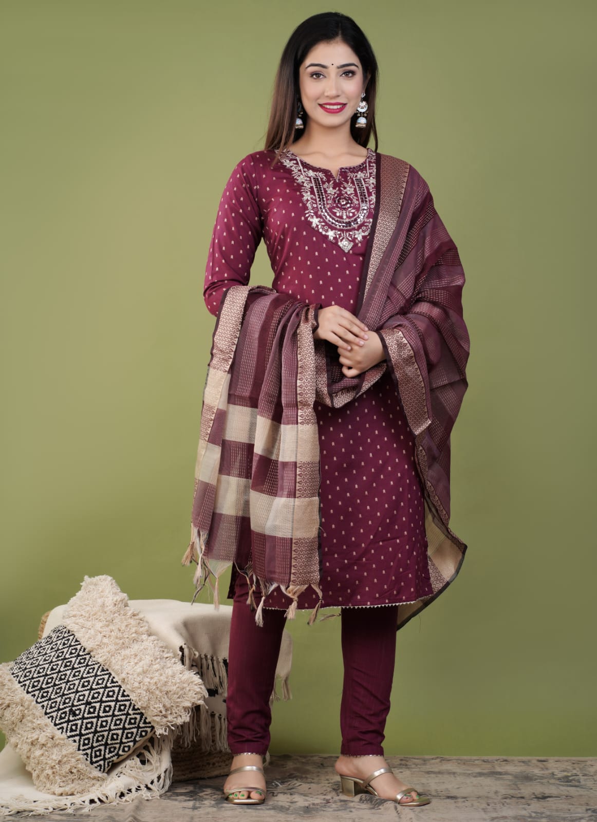 Pure Cotton Kurti With Heavy Thread work And Banarasi Dupatta
