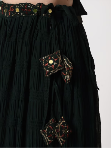 Green and gold-toned embellished semi-stitched lehenga, flared hem