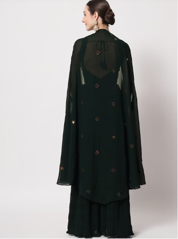 Green and gold-toned embellished unstitched blouse, has a v-neck, sleeveless