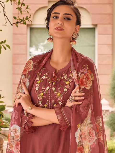 Viscose Rayon Embroidered Kurta With Printed Dupatta Set