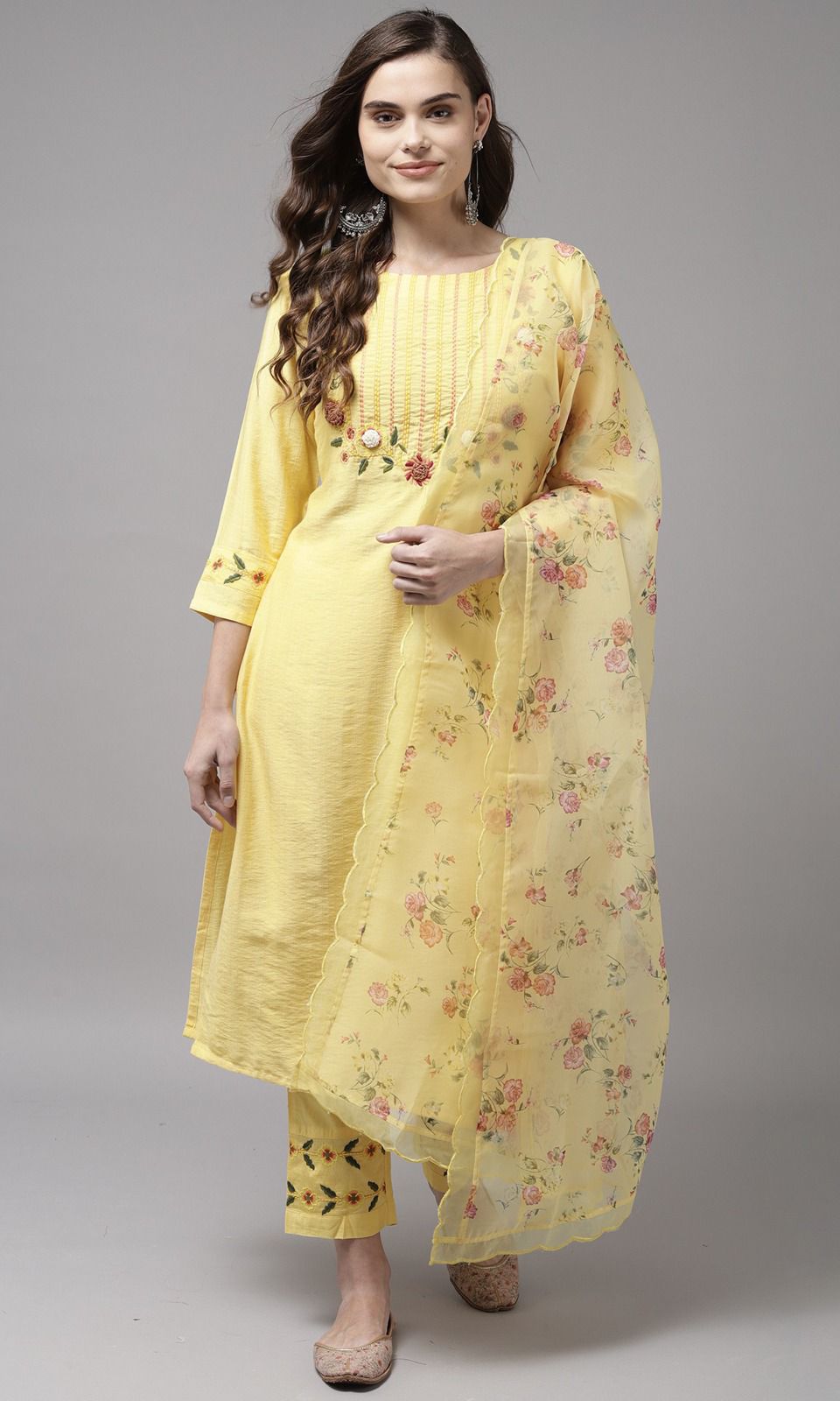 Viscose Rayon Sequence Embroidery Work Kurta Set With Dupatta