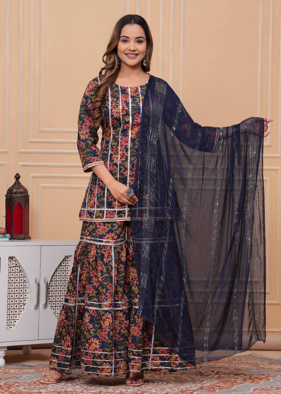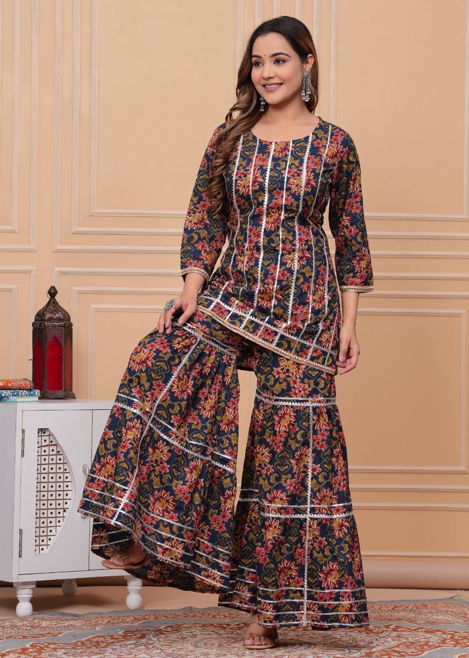 Women Gota pati Embroidered and Printed Cotton Sharara set